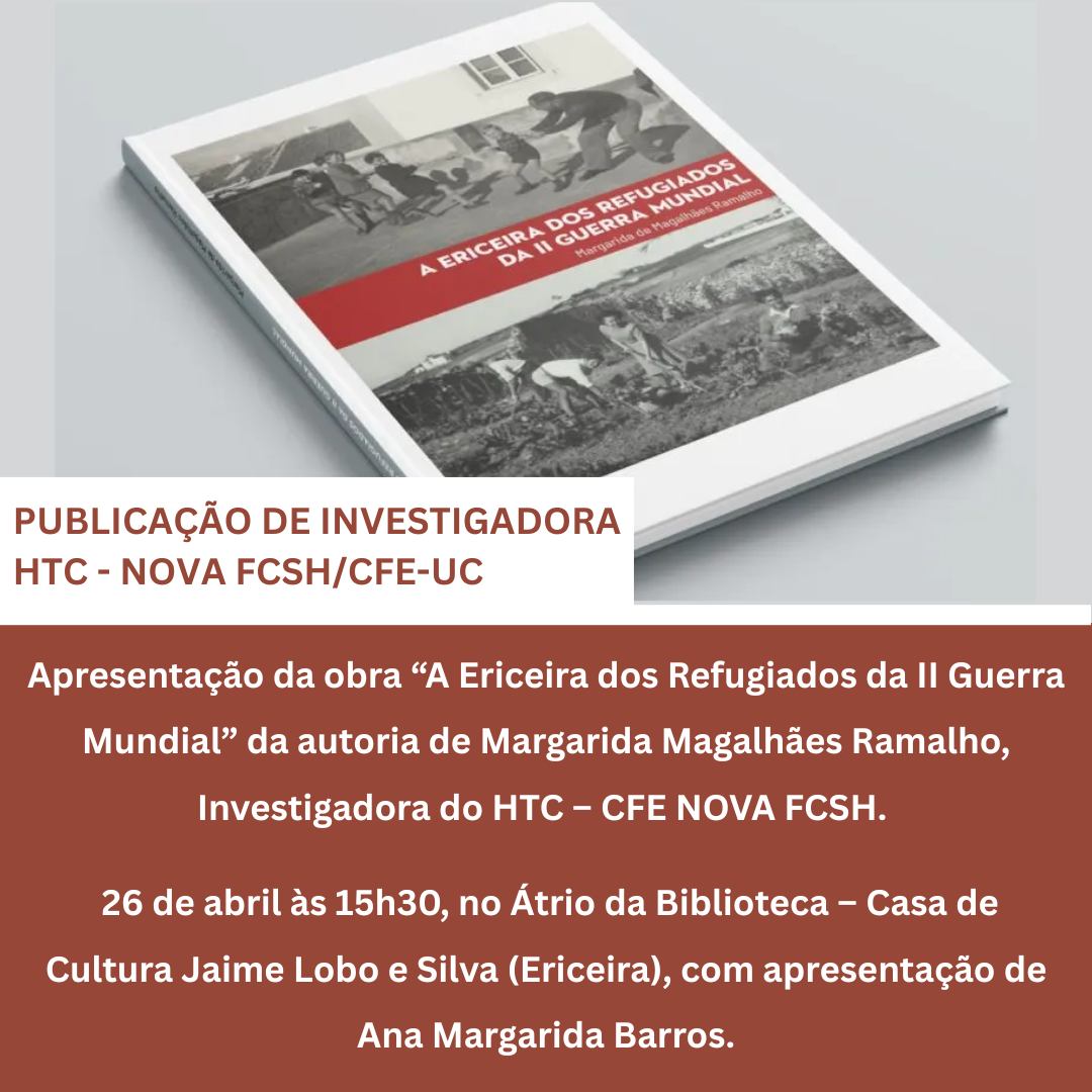 No próximo Domingo será apresentada a obra “A Ericeira dos Refugiados da II Guerra Mundial” da autoria de Margarida Magalhães Ramalho, Investigadora do HTC – CFE NOVA FCSH.