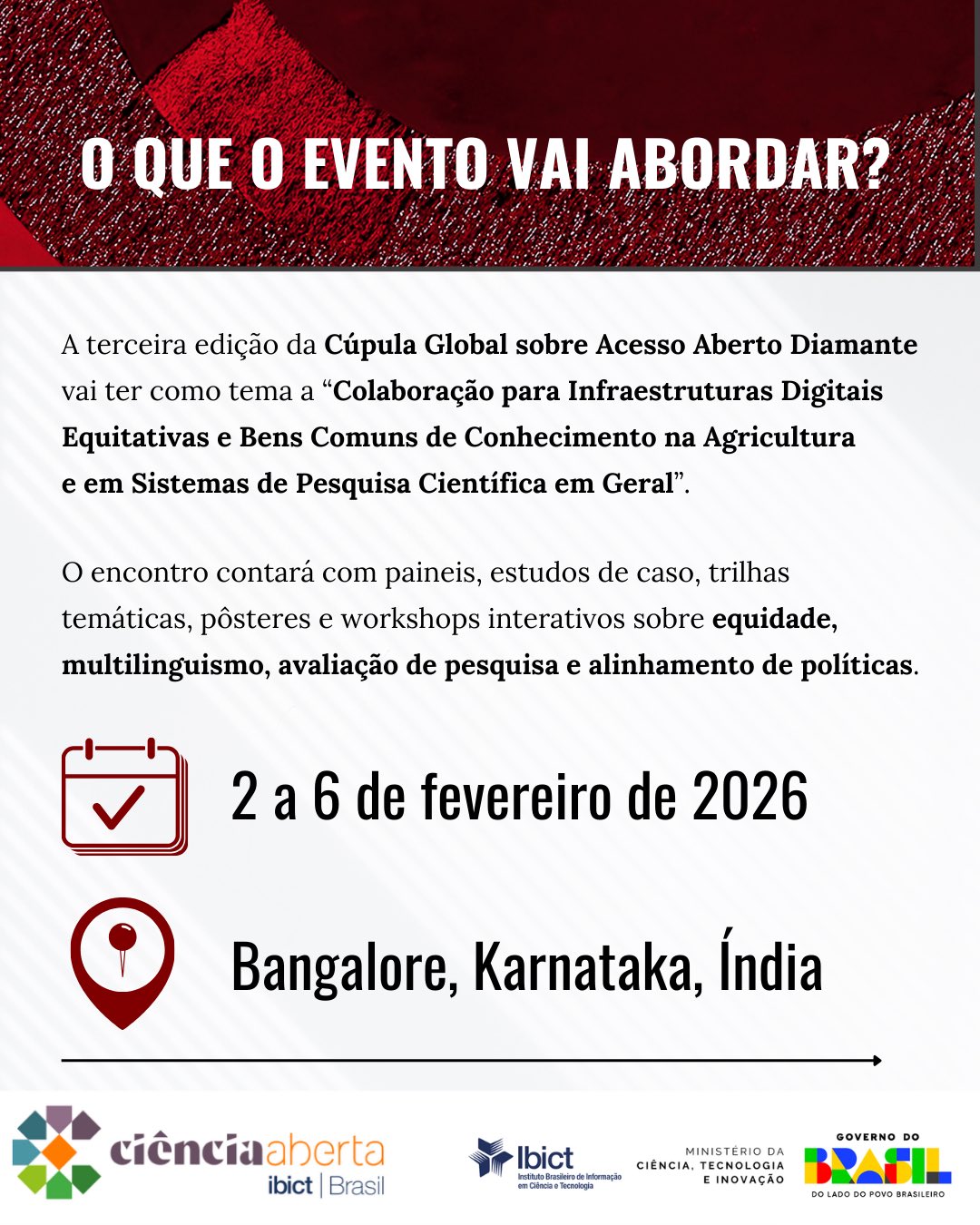 A 3ª Cúpula Global sobre Acesso Aberto Diamante será realizada entre os dias 2 e 6 de fevereiro na cidade de Bengaluru, na Índia.