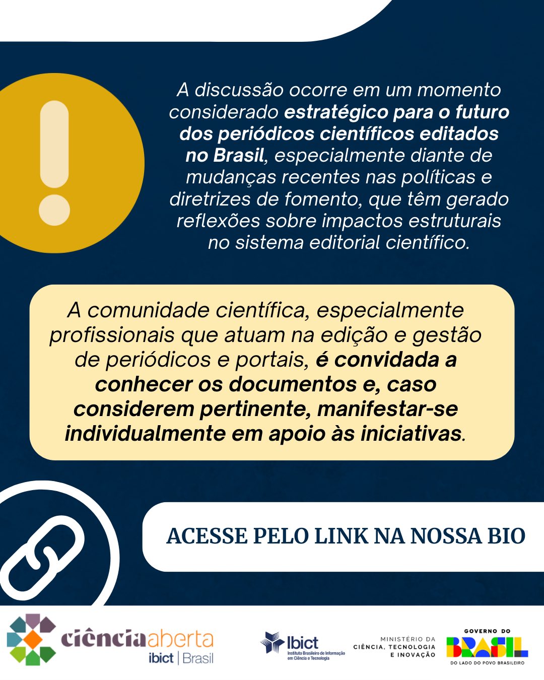 🗣️ A comunidade científica é convidada a conhecer os documentos e, caso considerem pertinente, manifestar-se individualmente em apoio às iniciativas.