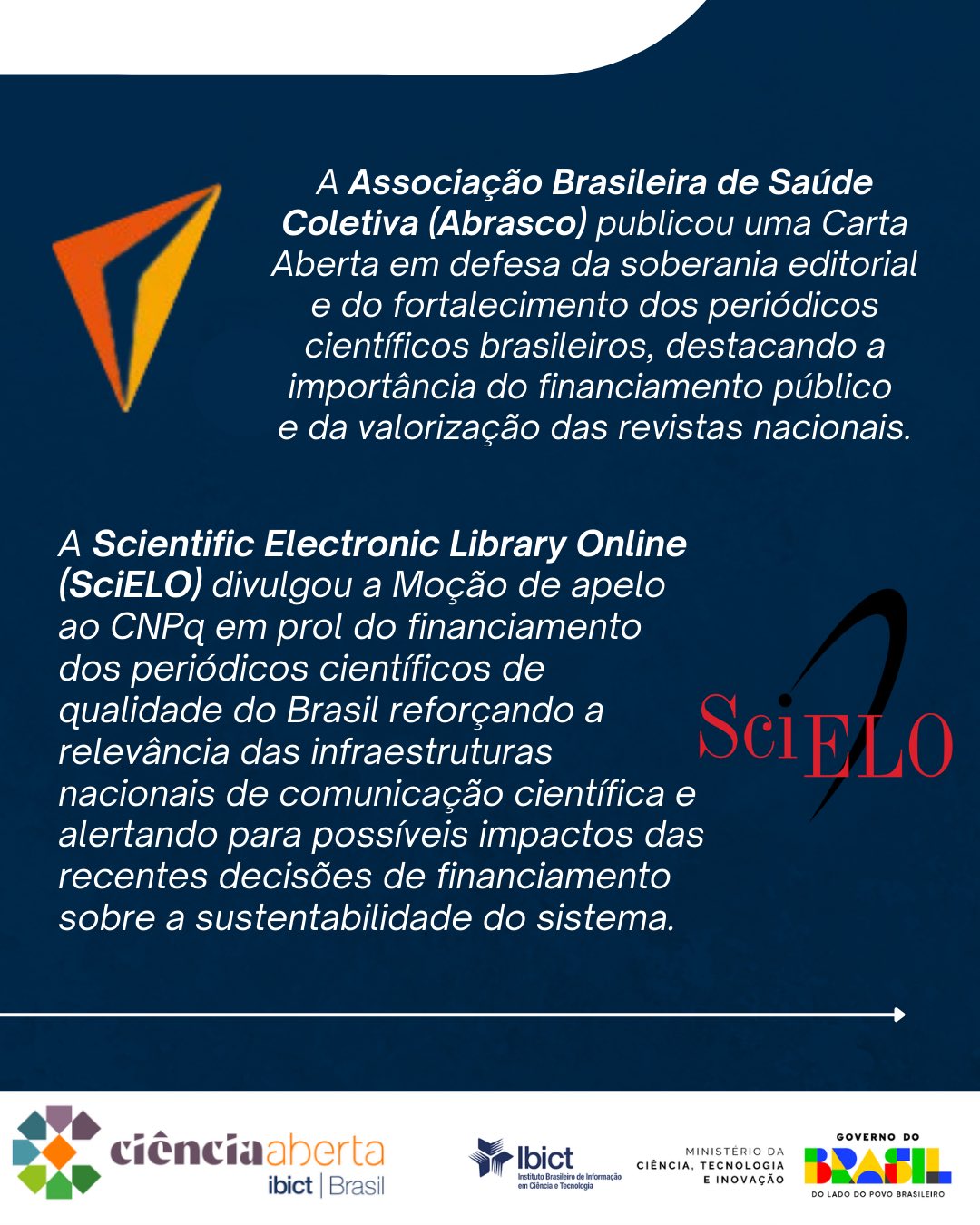 ✍🏼 Entre as instituições que se posicionaram, estão a Associação Brasileira de Saúde Coletiva (@abrascooficial), a Scientific Electronic Library Online (@scielobooks), a Rede Brasileira de Portais de Periódicos (Rede Tulipa) e a Associação Nacional de Pós-Graduação e Pesquisa em Educação (@anpednacional).