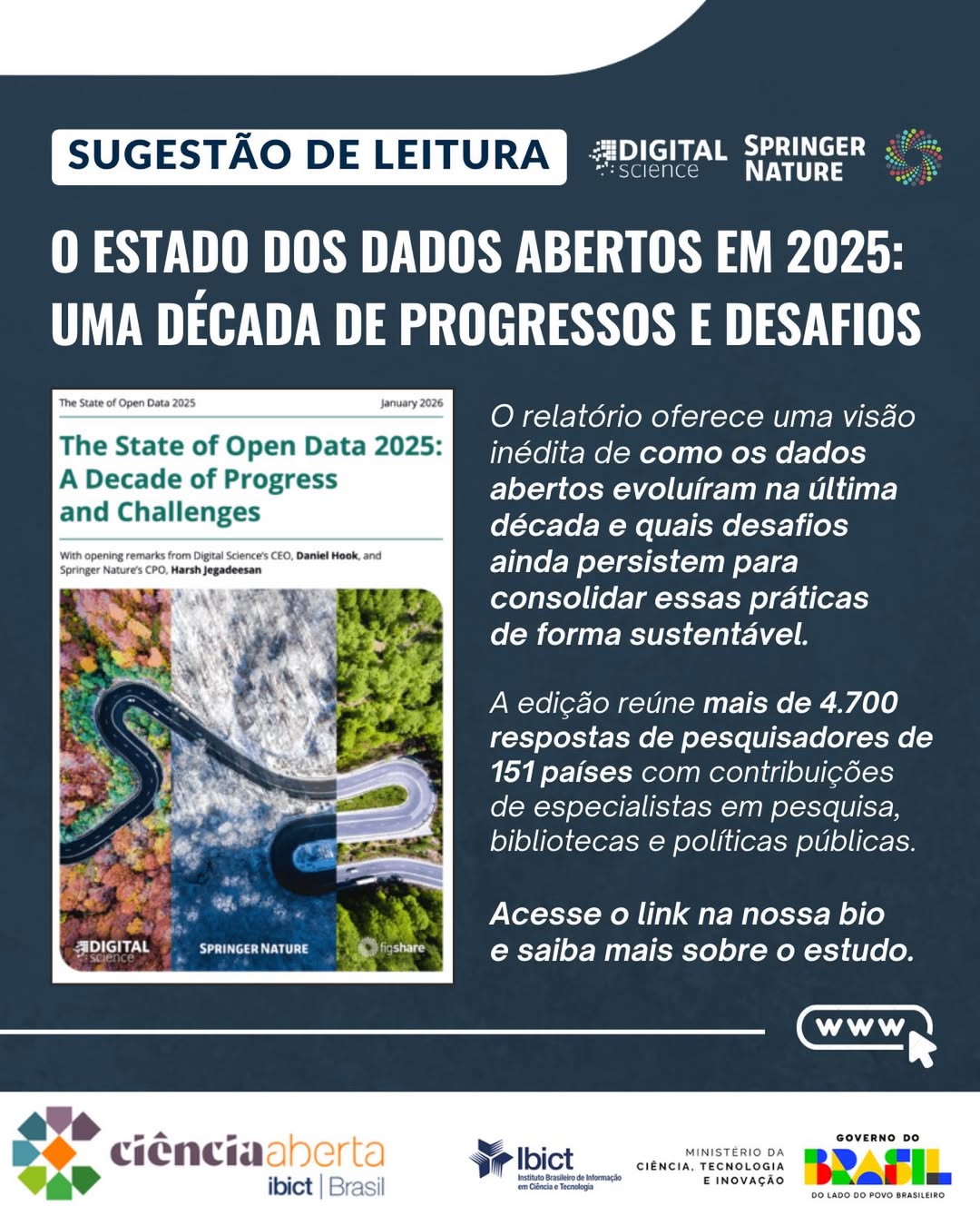 ✍🏼 Foi com esse propósito que as empresas Digital Science, Figshare e Springer Nature publicaram o relatório “O Estado dos Dados Abertos em 2025: Uma Década de Progresso e Desafios”.