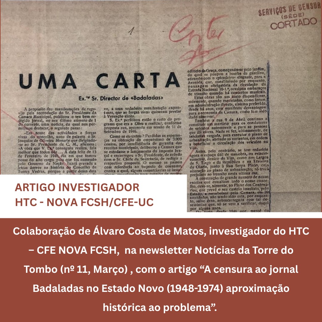 📝 Artigo “A censura ao jornal Badaladas no Estado Novo (1948-1974) aproximação histórica ao problema”, de Álvaro Costa de Matos, na newsletter Notícias da Torre do Tombo (nº 11, Março).