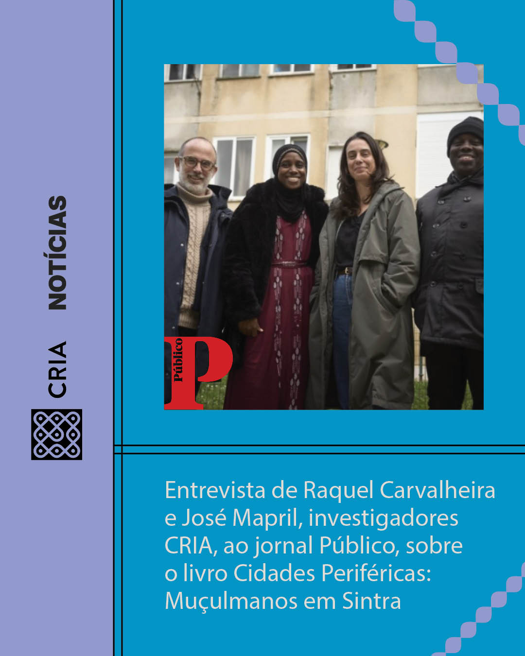 Entrevista de Raquel Carvalheira e José Mapril, investigadores do CRIA, ao jornal Público, sobre o livro Cidades Periféricas: Muçulmanos em Sintra.