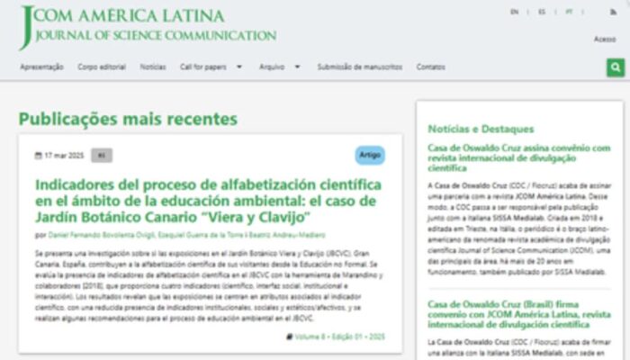 Publicado em: JCOM América Latina: investigación en divulgación de la ciencia