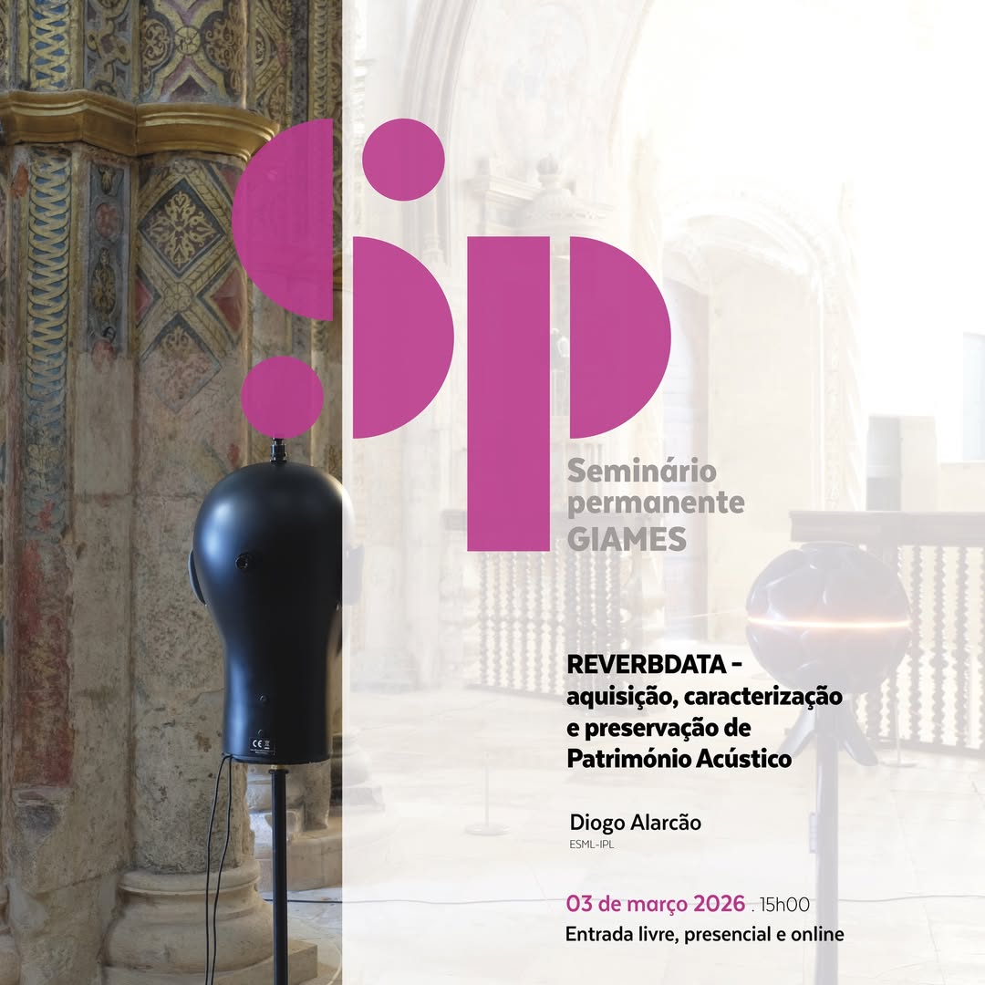 🎵🎶 O seminário permanente do grupo de investigação Acústica Musical e Estudos de Sons volta a reunir na próxima terça-feira, 3 de março, para acolher o investigador Diogo Alarcão, com uma apresentação intitulada “REVERBDATA – aquisição, caracterização e preservação de Património Acústico”.