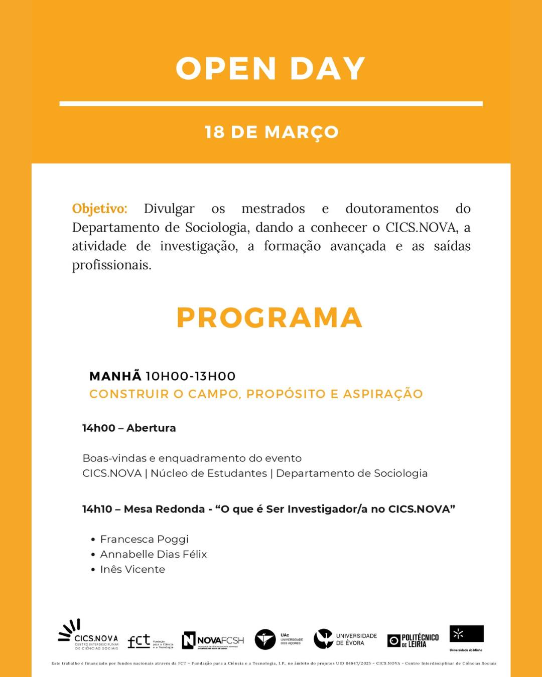 📣Open Day – Mestrados e Doutoramentos em Sociologia | CICS.NOVA