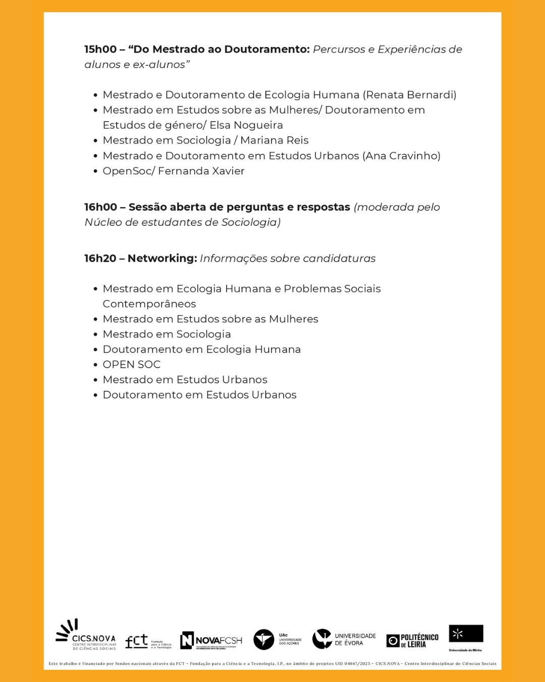 Fonte: Open Day – Mestrados e Doutoramentos em Sociologia | CICS.NOVA