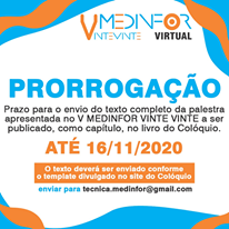 Atenção Prazo para o envio do texto completo da palestra apresentada no V MEDI… 15 Outubro, 2020 Geral View Post
