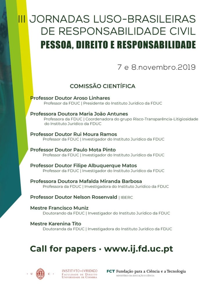 III JORNADAS LUSO-BRASILEIRAS DE RESPONSABILIDADE CIVIL · Pessoa, Direito e Responsabilidade 19 Maio, 2019 Eventos View Post