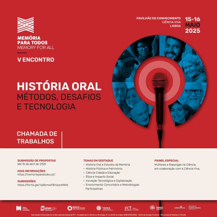 V Encontro Memória para Todos – História Oral: Métodos,Desafios e Tecnologia P… 21 Março, 2025 Geral View Post