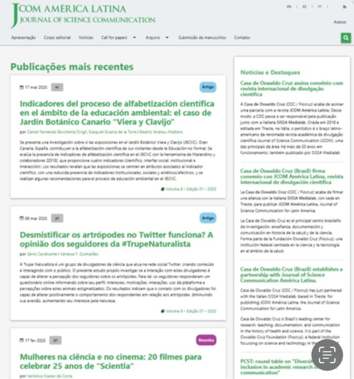 JCOM América Latina: investigación en divulgación de la ciencia Les invitamos … 22 Março, 2025 Geral View Post