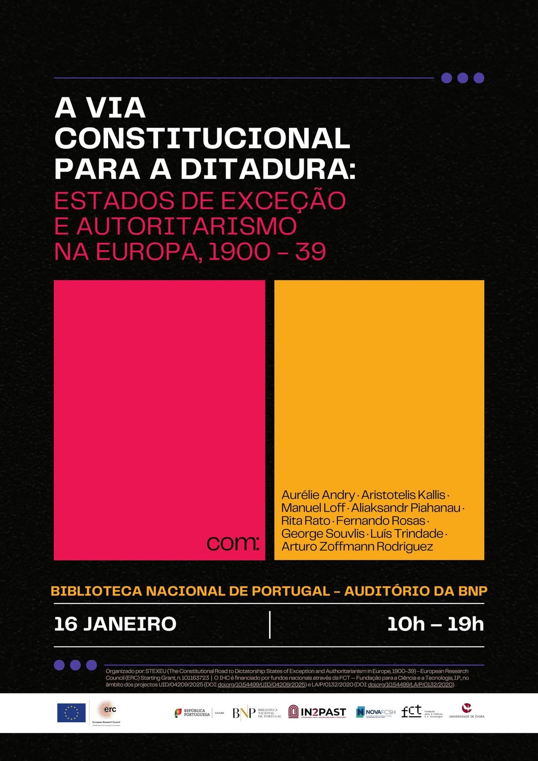 Para guardar na agenda: o projecto #STEXEU, financiado pelo European Research Council, vai ter o seu lançamento público a 16 de Janeiro na Biblioteca Nacional de Portugal!
